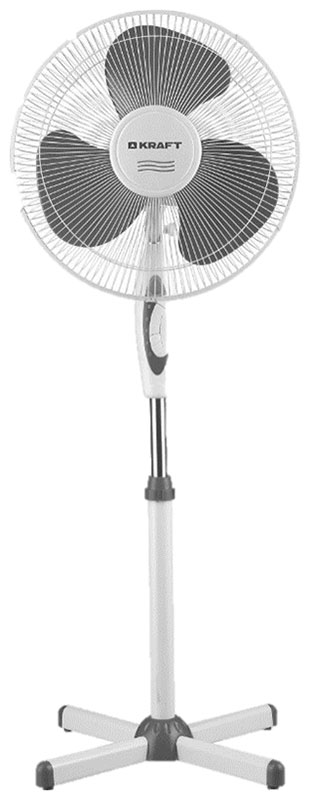 Вентилятор Kraft FS40-1621G поддерживает регулировку высоты и угла наклона «головы», что позволит подобрать наиболее оптимальное ее положение. При помощи рычажка на задней стороне можно включить режим автоматического вращения, благодаря которому поток воздуха будет распространяться по всей комнате. Три лопасти, имеющие диаметр 43 см, закрыты решеткой, что позволит защитить домочадцев от получения травм в процессе работы устройства.