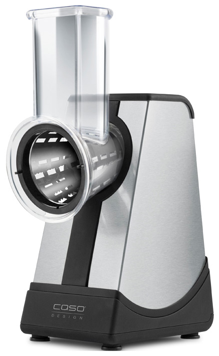 Мультирезка CASO CR4 мощностью 200 Вт обладает широкой горловиной. Поэтому перед использованием устройства не нужно нарезать продукты мелкими кусками. В основании находятся прорезиненные ножки, не допускающие опрокидывания устройства. Автономная работа осуществляется от сети напряжением 220-240 Вт. Электротерка CASO CR4 комплектуется 4 насадками, которые служат для крупного, мелкого и среднего измельчения, а также нарезки ломтиками. Они изготовлены из стали, не подверженной затуплению и образованию коррозийного налета.