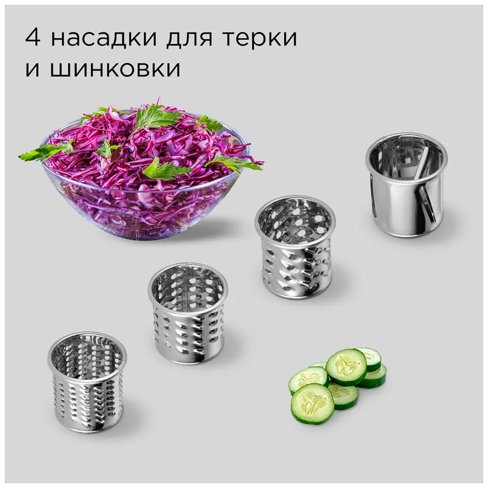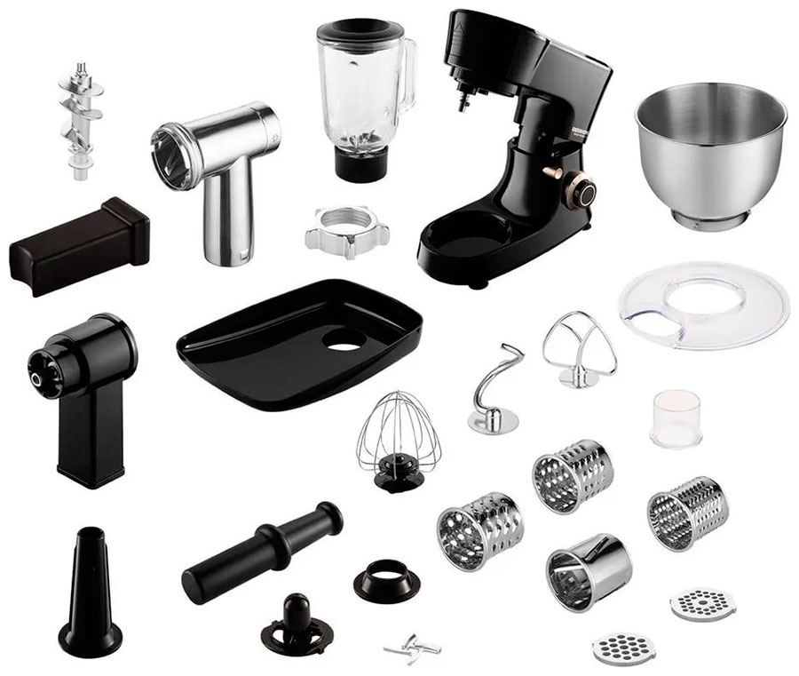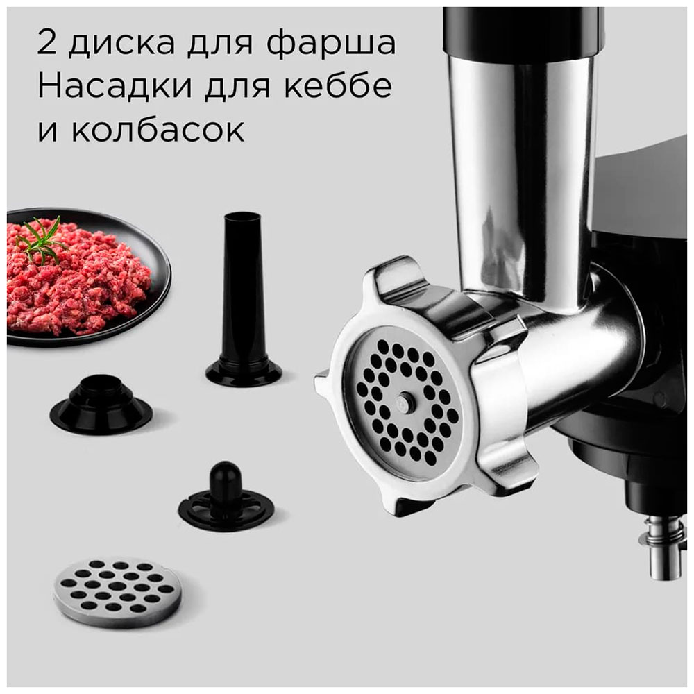 РЕДМОНД FM613 — кухонная машина, которую можно использовать как миксер, мясорубку, овощерезку и блендер. Благодаря широкому комплекту насадок она может замесить тесто для пирожков или пиццы, приготовить освежающий смузи, нарезать ингредиенты в салат и сделать фарш на котлеты. Имеет импульсный режим, 6 скоростей и максимальную мощность 1200 Вт — справится с любой задачей по своему профилю.