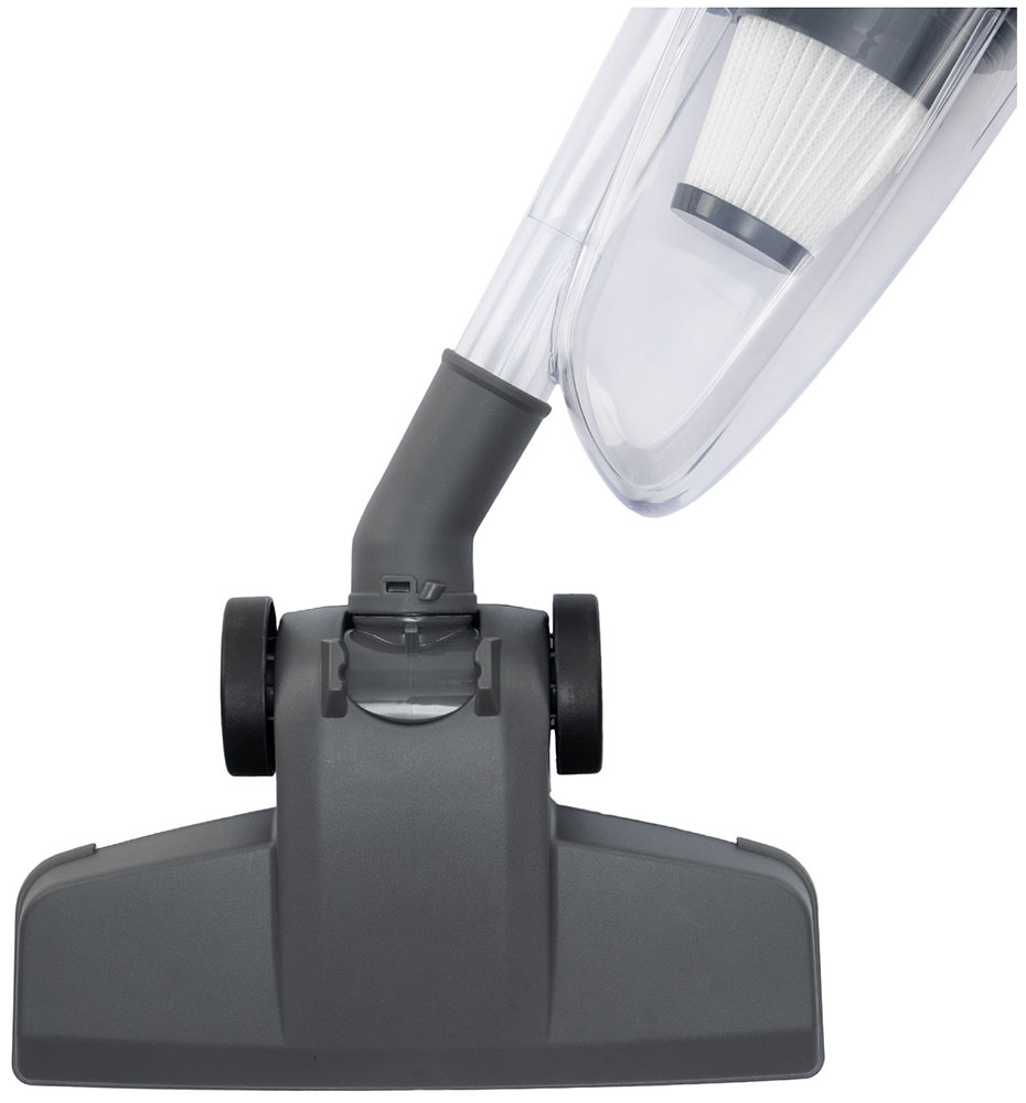 Компактный пылесборник объемом 0,7 л обеспечивает удобство в использовании и быструю очистку, а НЕРА-фильтр гарантирует задержку мельчайших частиц пыли, делая этот пылесос идеальным для людей с аллергией. В комплекте идут 3 насадки: универсальная насадка для полов и ковров, щетка для мебели и щелевая насадка для труднодоступных мест, что позволяет эффективно убирать в любых условиях.